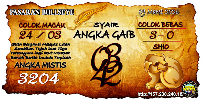 SYAIR ANGKA BULLSEYE HARI INI Senin 09 Maret 2026