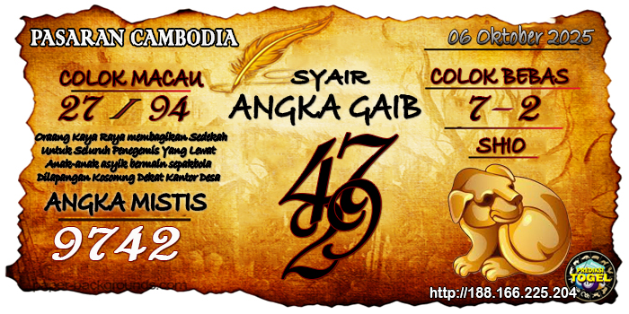 SYAIR TOGEL CAMBODIA HARI INI Senin 06 Oktober 2025