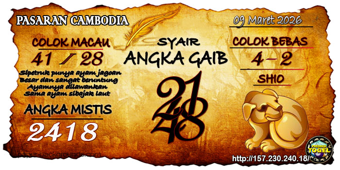 SYAIR TOGEL CAMBODIA HARI INI Senin 09 Maret 2026
