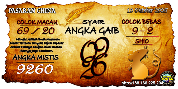 SYAIR ANGKA CHINA HARI INI Jumat 10 Oktober 2025