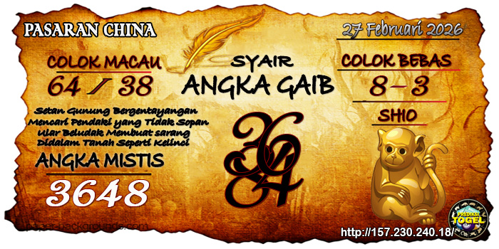 SYAIR ANGKA CHINA HARI INI Jumat 27 February 2026