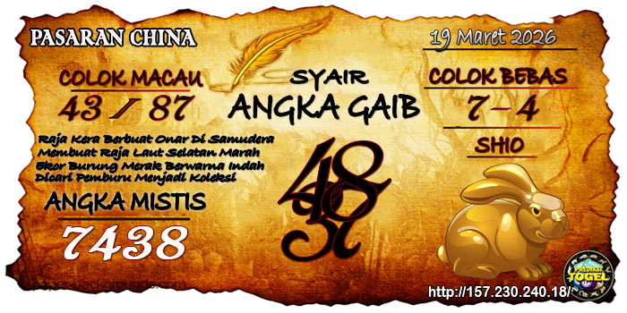 SYAIR ANGKA CHINA HARI INI Kamis 19 Maret 2026