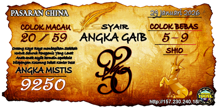 SYAIR ANGKA CHINA HARI INI Kamis 29 Januari 2026