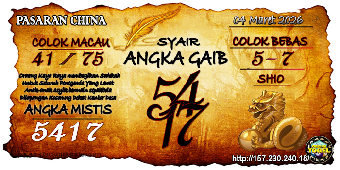 SYAIR ANGKA CHINA HARI INI Rabu 04 Maret 2026