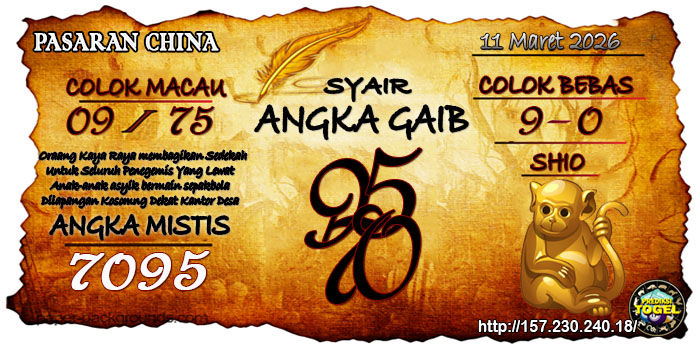 SYAIR ANGKA CHINA HARI INI Rabu 11 Maret 2026