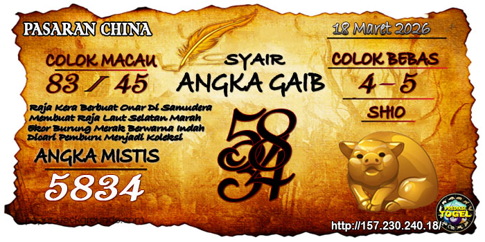 SYAIR ANGKA CHINA HARI INI Rabu 18 Maret 2026