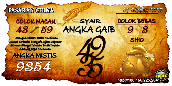 SYAIR ANGKA CHINA HARI INI Sabtu 04 Oktober 2025
