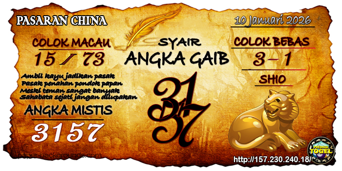 SYAIR ANGKA CHINA HARI INI Sabtu 10 Januari 2026
