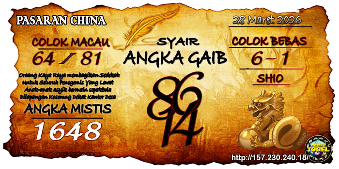 SYAIR ANGKA CHINA HARI INI Sabtu 28 Maret 2026
