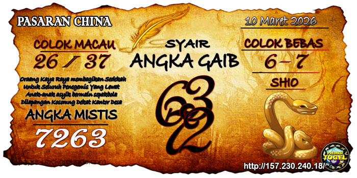 SYAIR ANGKA CHINA HARI INI Selasa 10 Maret 2026
