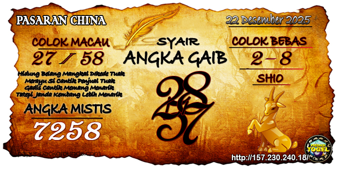 SYAIR ANGKA CHINA HARI INI Senin 22 Desember 2025