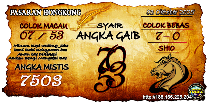 SYAIR ANGKA HONGKONG HARI INI Jumat 03 Oktober 2025