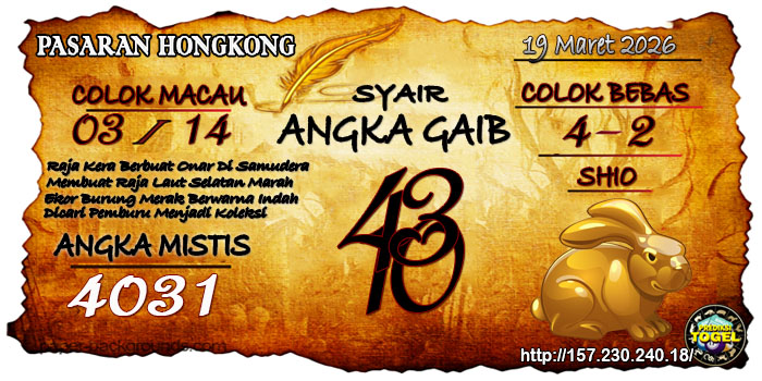 SYAIR ANGKA HONGKONG HARI INI Kamis 19 Maret 2026