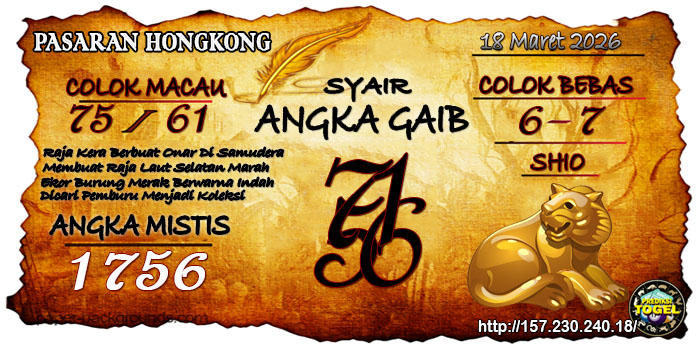 Syair Prediksi Togel Hongkong Pada Hari Rabu 18 Maret 2026