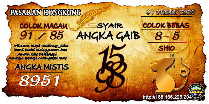 SYAIR ANGKA HONGKONG HARI INI Sabtu 04 Oktober 2025