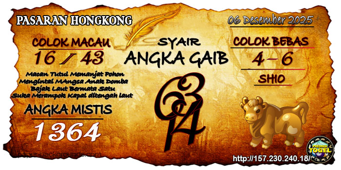 SYAIR ANGKA HONGKONG HARI INI Sabtu 06 Desember 2025