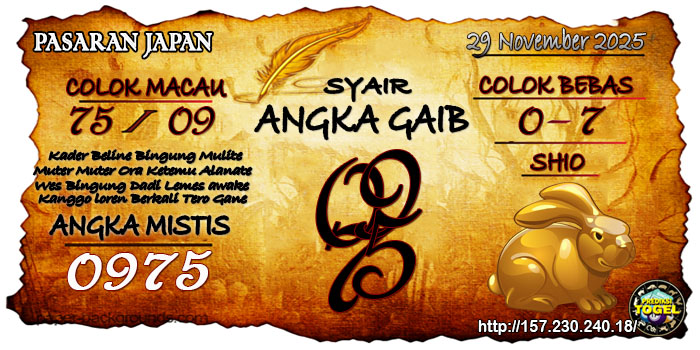 SYAIR ANGKA JAPAN HARI INI Sabtu 29 November 2025