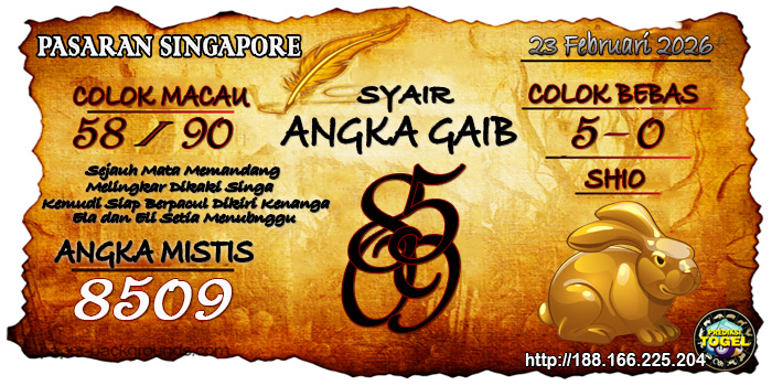 SYAIR ANGKA SINGAPORE HARI INI Senin 23 February 2026
