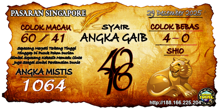 SYAIR ANGKA SINGAPORE HARI INI Senin 29 Desember 2025