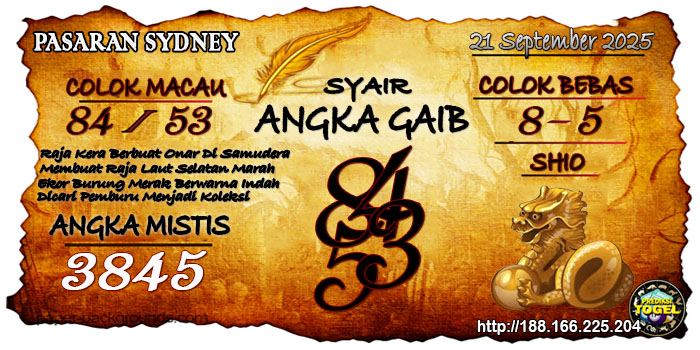 SYAIR ANGKA SYDNEY HARI INI Minggu 21 September 2025