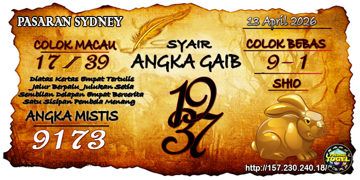 SYAIR ANGKA SYDNEY HARI INI Senin 13 April 2026