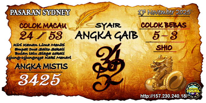 SYAIR ANGKA SYDNEY HARI INI Senin 17 November 2025