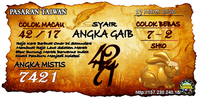 SYAIR ANGKA TAIWAN HARI INI Kamis 19 Maret 2026