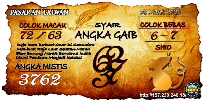SYAIR ANGKA TAIWAN HARI INI Minggu 08 Maret 2026