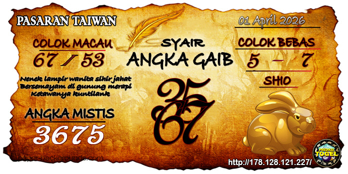 SYAIR ANGKA TAIWAN HARI INI Rabu 01 April 2026