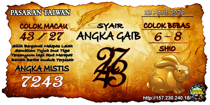 SYAIR ANGKA TAIWAN HARI INI Senin 13 April 2026