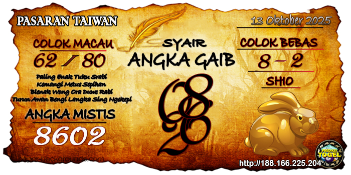 SYAIR ANGKA TAIWAN HARI INI Senin 13 Oktober 2025